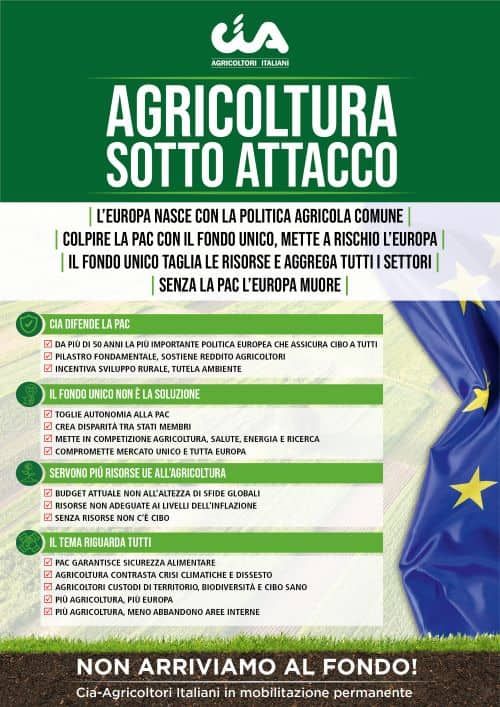 CIA PER LA PAC – Dalla campagna contro le rendite fondiarie alle sollecitazioni inviate, via lettera, anche alla premier Meloni, dall’adesione alla petizione del Copa-Cogeca al lavoro tra i Paesi del Mediterraneo, non si ferma la mobilitazione per la Pac messa in atto dalla Confederazione: perché è un pilastro fondamentale a sostegno del reddito degli agricoltori, ma anche l’unico strumento in grado di incentivare lo sviluppo rurale e la tutela dell’ambiente. Perché il Fondo unico toglie autonomia alla Pac, riduce le risorse e cancella le specificità agricole; crea disparità tra gli Stati membri, mette in competizione agricoltura, salute, energia e ricerca; compromette il mercato unico e tutta l’Europa. Perché resta aperto il nodo budget, non adeguato alle sfide globali, ai livelli dell’inflazione e alle garanzie di cibo sano e sicuro. Perché il tema riguarda tutti, in gioco c’è l’agricoltura che contrasta la crisi climatica e il dissesto, gli agricoltori che sono custodi del territorio e della biodiversità, argine contro l’abbandono delle aree interne.